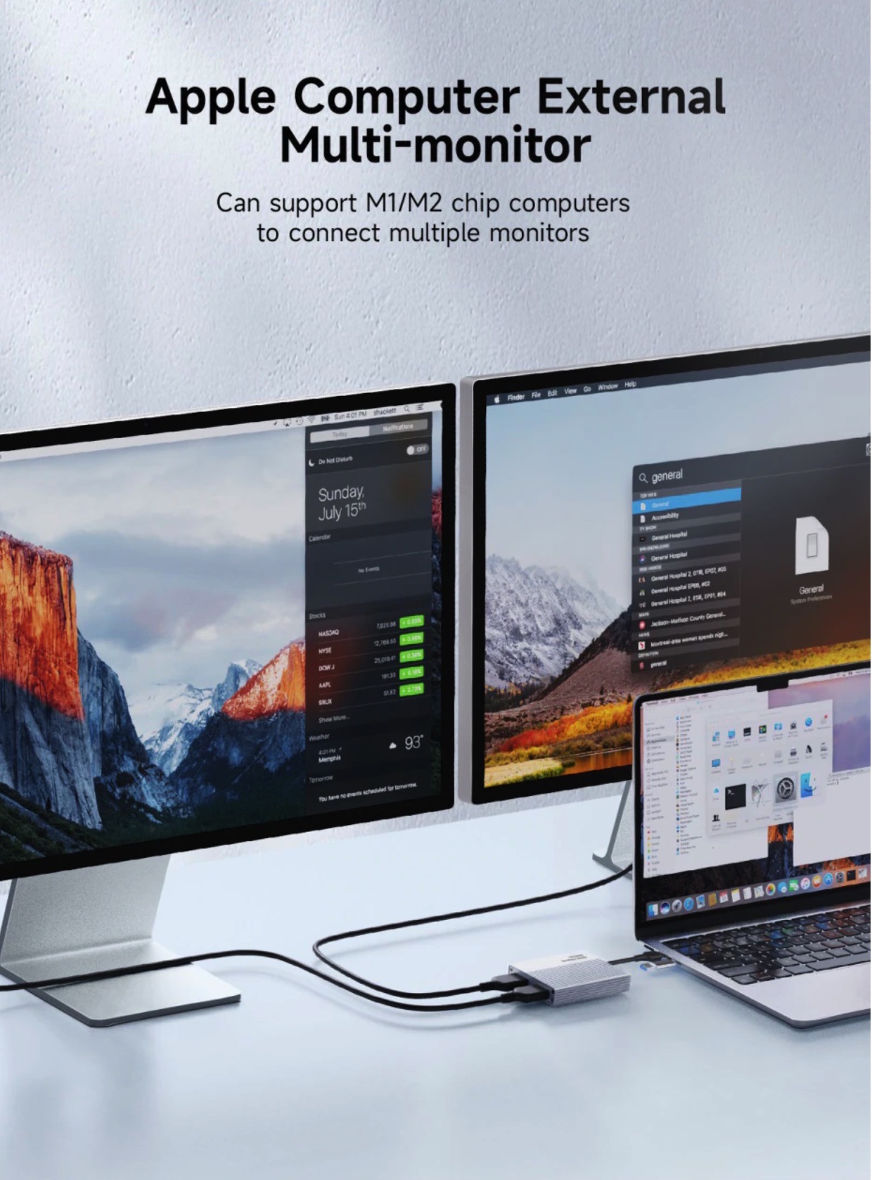 อุปกรณ์พ่วงออกสองจอ McBook Pro Air M1 M2 M3 M4 Mcmini M1 M2 M3 M4Docking Station, Hagibis Dual Monitor 4K 60Hz and 30Hz Dual Display with 3 slot USB port