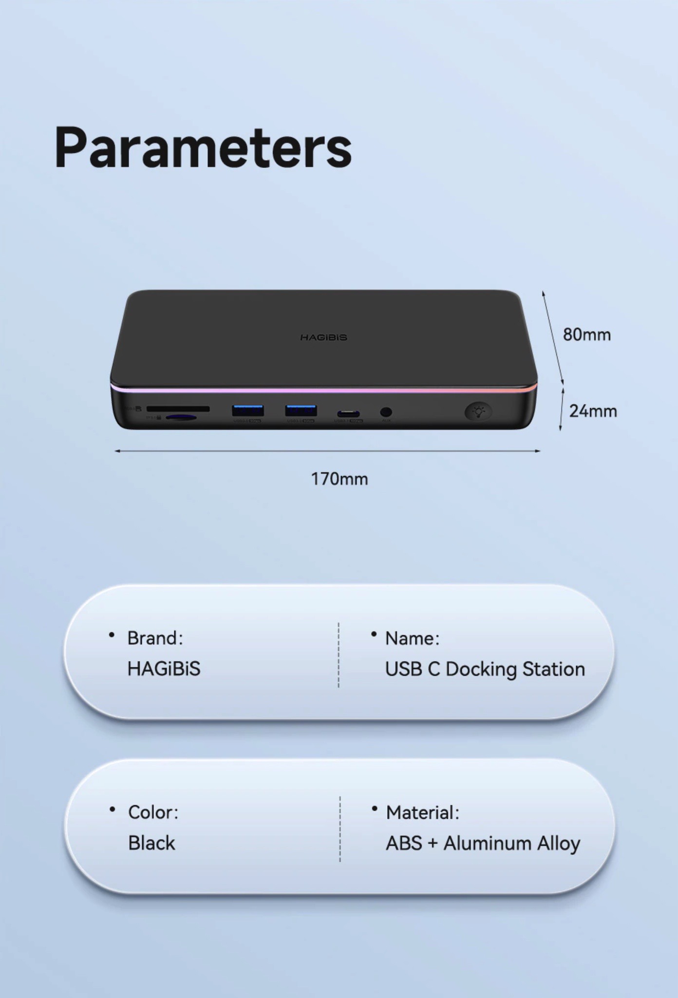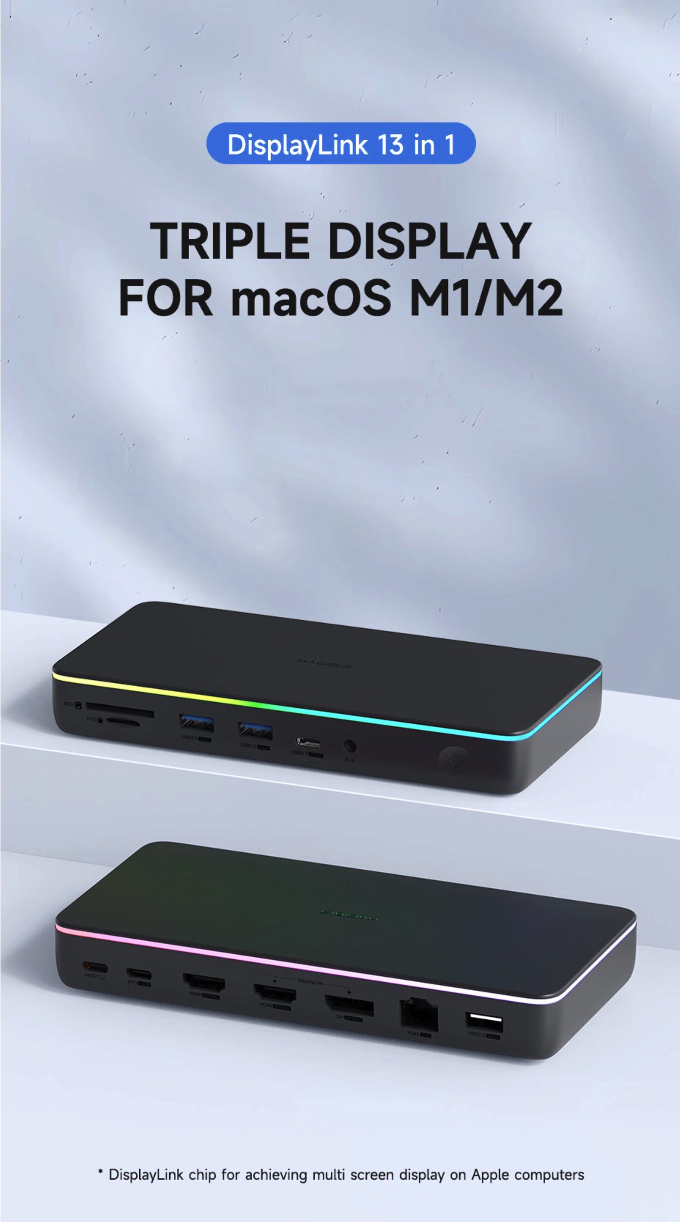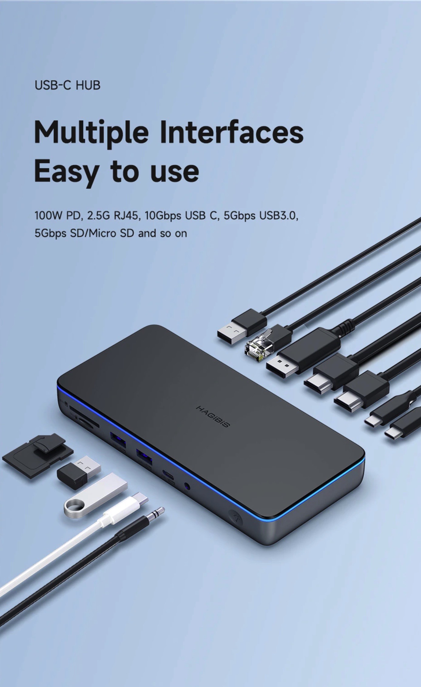 Hagibis DisplayLink Docking Station for MacBook M1/M2/Windows, Triple Display 3 Monitors USB C Hub with LED Strip Light, 8K HDMI, 4K@60Hz DispalyPort, 100W PD, 2.5G RJ45, 10Gbps USB3.1