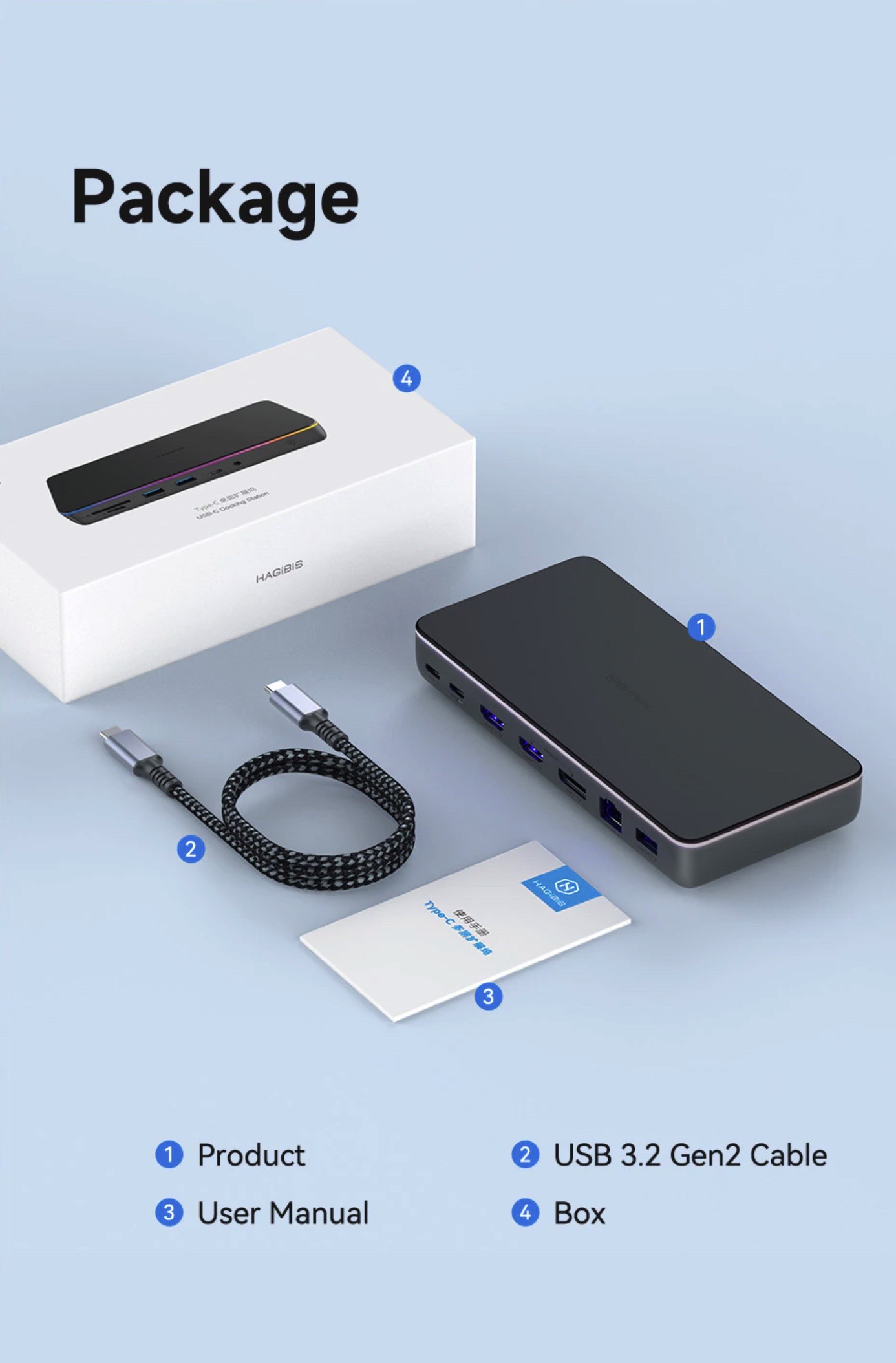อุปกรณ์พ่วงออกสองจอ McBook Pro Air M1 M2 M3 M44 Mcmini M1 M2 M3 M4 Docking Station, Hagibis Dual Monitor 4K 60Hz and 30Hz Dual Display with 3 slot USB port