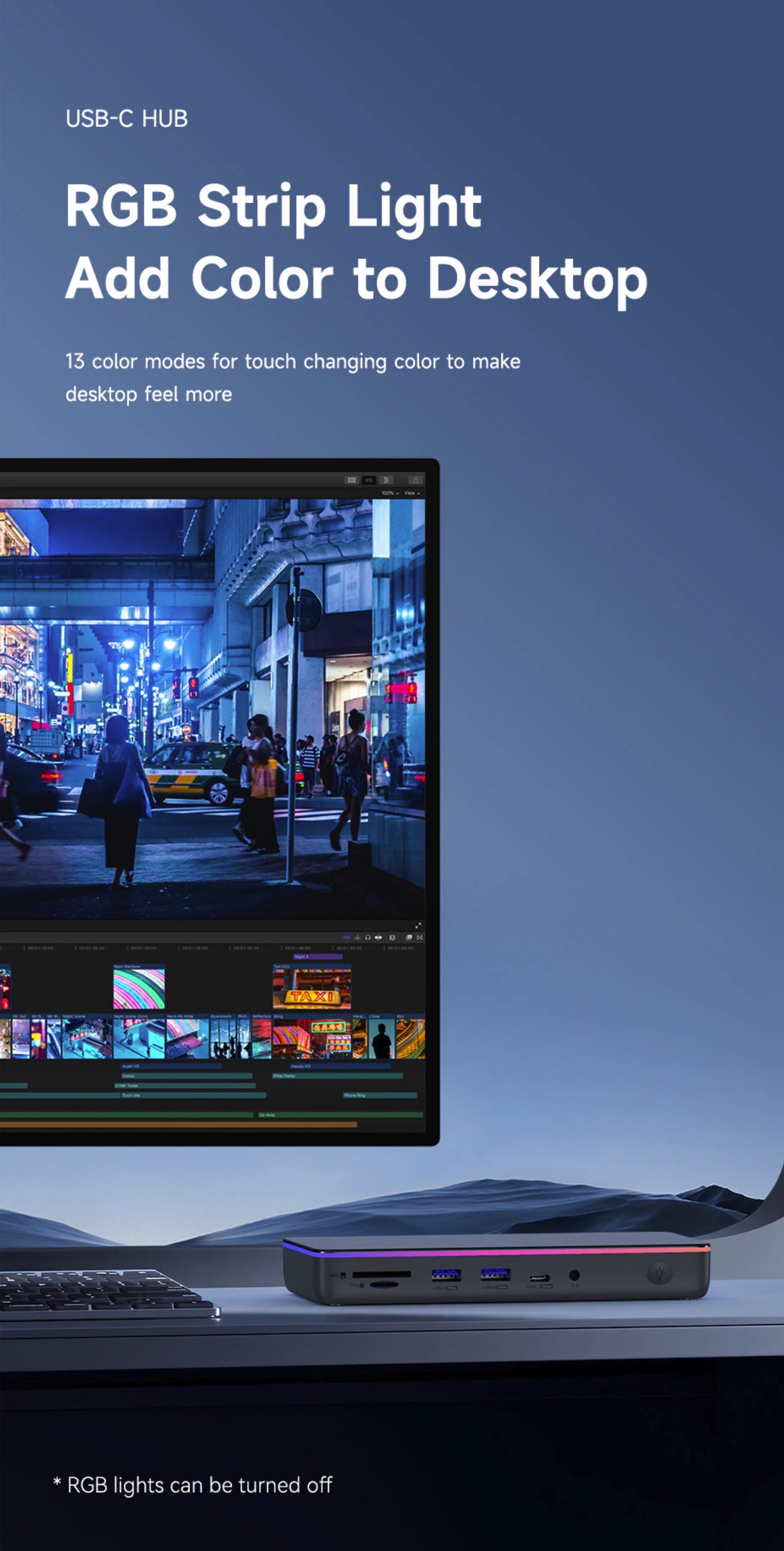 Multi-color LED strip light: 13 color modes, touch to change it. Enhance the texture of your desktop while providing more cool experiences, and when you don't need it, you can also choose to turn it off temporarily