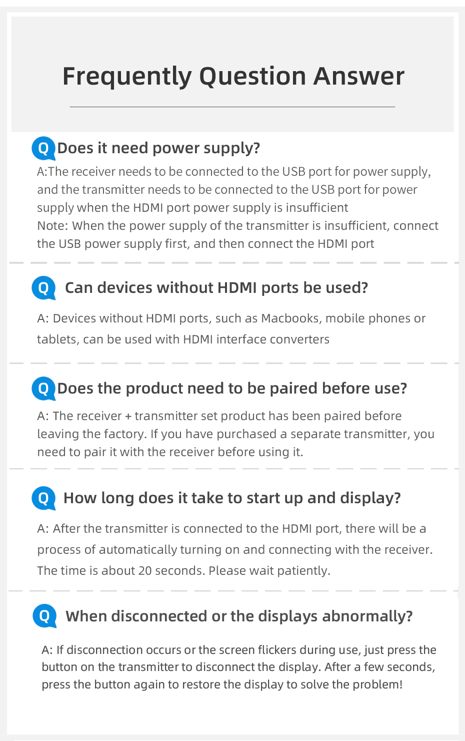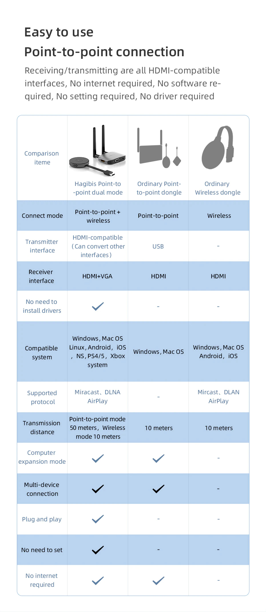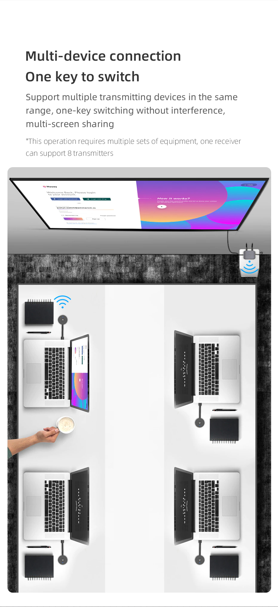 Hagibis G6W ไร้สาย HDMI Video Transmitter & Receiver Extender จอแสดงผล Dongle สำหรับทีวีโปรเจคเตอร์ Switch 【หลาย-to-One 】8เครื่องส่งสัญญาณสามารถเชื่อมต่อกับ1เครื่องรับสัญญาณในเวลาเดียวกัน, One Click Switch, ไม่รบกวนกับแต่ละอื่นๆ, และหลายหน้าจอสามารถได้แชร์. * หมายเหตุ: การดำเนินการนี้ต้องใช้เพิ่มเติมซื้อเครื่องส่งสัญญาณและ1เครื่องรับรองรับ8เครื่องส่งสัญญาณ 【 HDMI + VGA Dual หน้าจอ】HDMI, VGA และ3.5มม.ช่องเสียบ collocated ได้อย่างอิสระและเอาท์พุทในเวลาเดียวกันหรือแยกต่างหาก ส่งสัญญาณ Crystal Clear, สตรีม HD ที่ไม่มีการบีบอัดวิดีโอและเสียงได้อย่างง่ายดาย สัญญาณประสบการณ์ Ultra Low latency (Real Time) แม้สตรีมมิ่ง3D วิดีโอ1080P อุปกรณ์ 【 WiFi Required】Place TV anywhere ภายใน50เมตรแหล่งกำเนิดแสงที่มีเครื่องส่งสัญญาณและตัวรับสัญญาณ เพียงเชื่อมต่อเครื่องส่งสัญญาณชุด top box, คอนโซลเกม, หรืออื่นๆเอาต์พุต HDMI อุปกรณ์เชื่อมต่อตัวรับสัญญาณๆ HD 【พลักแอนด์เพลย์】เรียกใช้และ20วินาที Plug-and-Play ที่แท้จริงประสบการณ์ เชื่อมต่อเครื่องส่งสัญญาณ HDMI จากนั้นเชื่อมต่อตัวรับสัญญาณรอง HDTV, และคุณ go. ใช้มาตรฐาน802.11 5GHz. 【Highly 】HDMI อินเทอร์เฟซที่เข้ากันได้สูงและสามารถรถอื่นๆอินเทอร์เฟซ อุปกรณ์ด้วยอินเทอร์เฟซ HDMI สามารถใช้โดยตรง, และอุปกรณ์ไม่มีอินเทอร์เฟซ HDMI สามารถใช้กับ HDMI Converter. สตรีม True 1080P ความละเอียดสูง3D วิดีโอและเสียงไปยังทีวีหรือโปรเจคเตอร์ นาฬิกาภาพยนตร์และทีวีแสดงจากแล็ปท็อป, PC, MacBook, iPad Pro, ตัวรับสัญญาณ A/V, คอนโซลเกม, PS4/5, Xbox, Nintendo Switch, สายเคเบิล/ดาวเทียม หมายเหตุ: เครื่องส่งสัญญาณไม่สามารถใช้ Alone, ต้องใช้กับ Receiver!