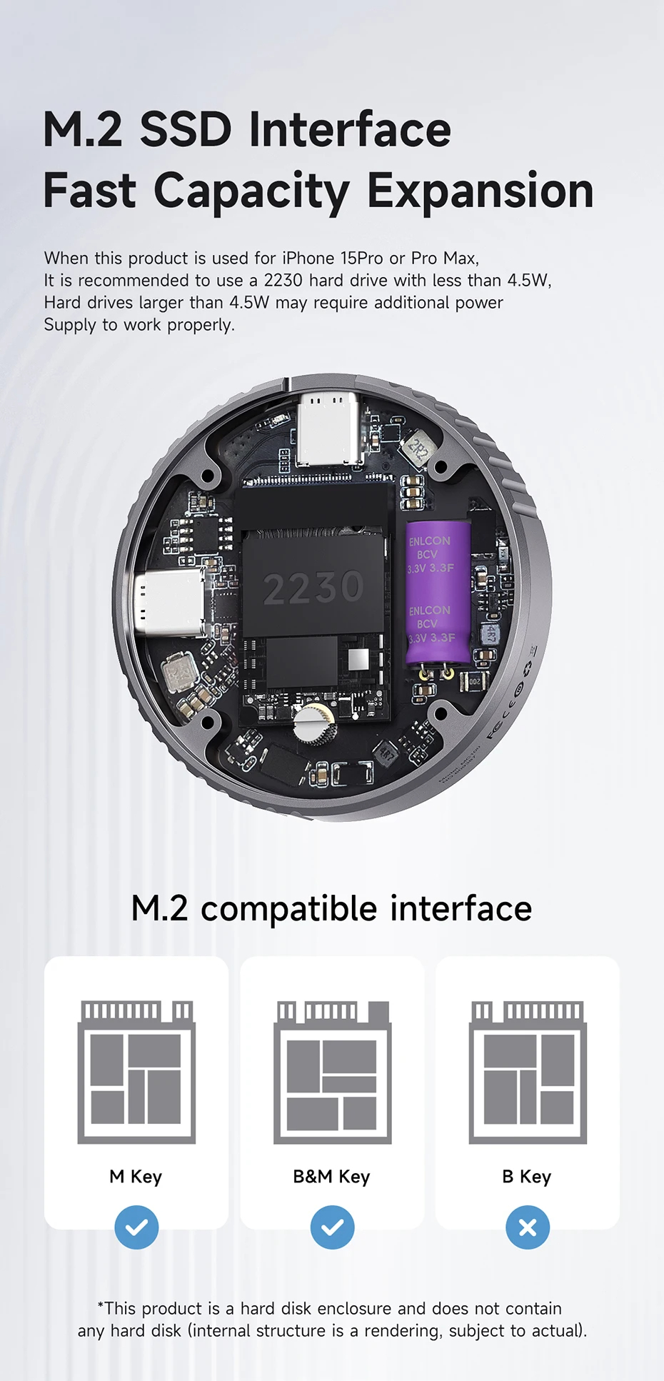 M.2 2230 NVMe SSD: กล่องฮาร์ดไดรฟ์ SSD Hagibis M.2 2230 เป็นเครื่องมือที่เข้ากันได้กับฮาร์ดไดรฟ์ SSD ตามพรอทอคอล NVMe (B+M Key/ M Key) โดยเฉพาะสำหรับฮาร์ดไดรฟ์ซอลิดสเตตขนาด 2230 มันสนับสนุนอินเตอร์เฟซ USB3.2 GEN2 Type-C ที่ความเร็ว 10Gbps เสียงต่อเสียง ง่ายต่อการใช้งานมากขึ้น