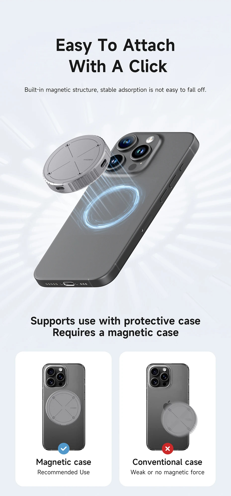 พอดีกับ : มีโครงสร้างด้านแม่เหล็กภายใน ให้คลิกและติดอยู่อย่างมั่นคง ดึงดูดอย่างมั่นคงและไม่ง่ายต่อการหลุดร่วง ที่ถูกจับคู่กับซองโทรศัพท์ มันยังสามารถถือโทรศัพท์พร้อมกับเคสได้ด้วย
