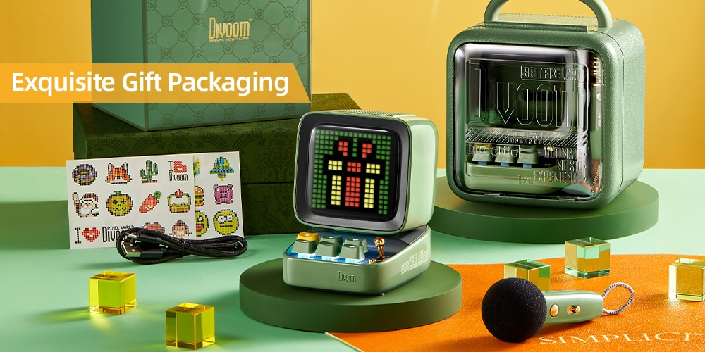 1 * ลำโพง Ditioo / 1 * ไมค์ / 1 * กล่องของขวัญ / 1 * สายชาร์จ Type C / คู่มือการใช้งาน
